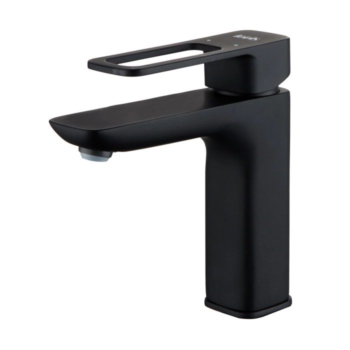 Смеситель для умывальника, однозахватный, латунь, покрытие "черный матовый", керамический картридж Softap 35 мм, поворотный силиконовый аэратор Neoperl.В комлекте: гибкая подводка, крепёж. Упаковка: коробка, микрогофрокартон, индивид. мешок.