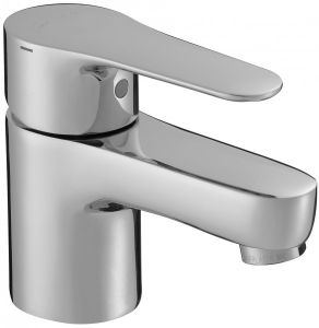 монтаж: на горизонтальную поверхностьКомпактный однорычажный смеситель с фиксированным изливом, монтируемый в одно отверстие, отлично подходит для ванной комнаты в современном стиле. Смеситель оснащён керамическим картриджем с регулируемым ограничителем температуры и чувствительным ограничителем расхода воды. Аэратор защищён от известковых отложений. Смеситель легко демонтируется и очищается. В комплекте: смеситель, гибкая подводка.