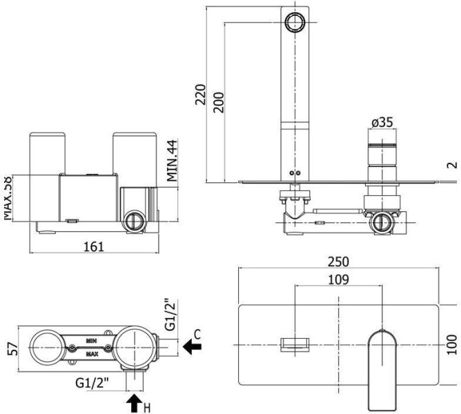 Смеситель для раковины встраиваемый с изливом 200мм с накладкой из нерж. Стали 250х100мм, ХромСмеситель для раковины Paffoni Tango TA105CR (с внутренней частью) предназначен для раковины. Своим сдержанным дизайном и колористикой он внесет в интерьер помещения особое настроение, подчеркнув его своеобразие. Он изготовлен из надежного материала латунь/Нержавеющая сталь, который не подвержен коррозии, а потому прослужит без ремонтов. Изделие является удачным примером достойного качества. Управление в смесителе предусмотрено однорычажное, что порадует любителей такого типа смесителей. Высокую работоспособность и основательность смесителю гарантирует керамический картридж, отличительной чертой которого является проработанная конструкция - залог четкой работы в течение длительного времени. Не зря гарантия на смеситель – 5 лет, в течение которого производитель Paffoni заверяет в его бесперебойной работе. Форма излива в смесителе - традиционная, а тип - фиксированный. При покупке учтите, что подводка у смесителя жесткая, что важно для его монтажа.