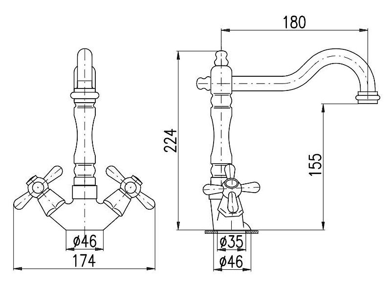 - Высота смесителя:22.4