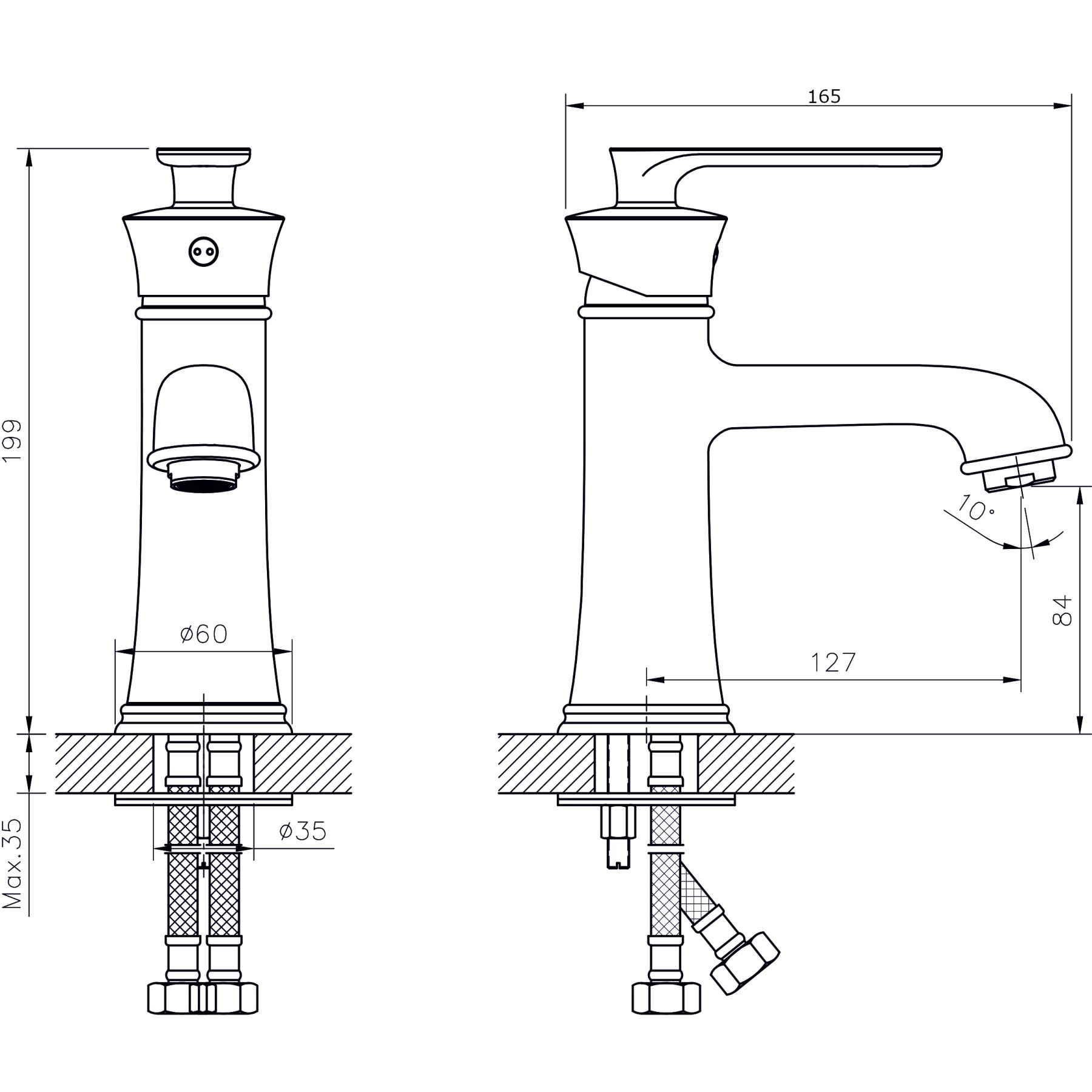 Смеситель для раковины RUSH арт. FL0835-11 с металлической ручкой из коллекции Flores изготовлен из высококачественной латуни и имеет рычажное управление.В смеситель установлен картридж D-35 с керамическими пластинами. Высота смесителя 199 мм. Излив литой, неповоротный, 127 мм. Высота излива до аэратора 84 мм. Аэратор изготовлен из пластика с нержавеющим корпусом, угол наклона аэратора- 10 гр. В комплекте гибкая подводка с латунными гайками 45 см - 2шт, универсальная присоединительная группа для установки на горизонтальную поверхность, фум-лента, индивидуальный пакет, паспорт, гарантийный талон.
