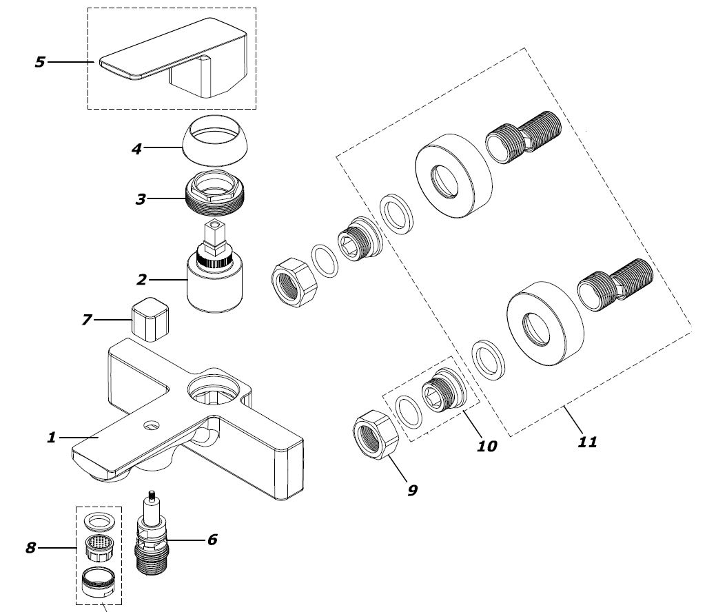 Смеситель для ванны AZARIO CADEO AZ-15940501 с коротким изливом купить