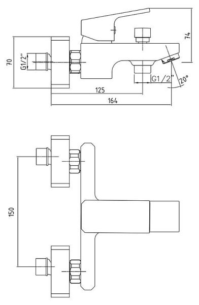 Смеситель для ванны E.C.A. Tiera 102102469EX хром купить