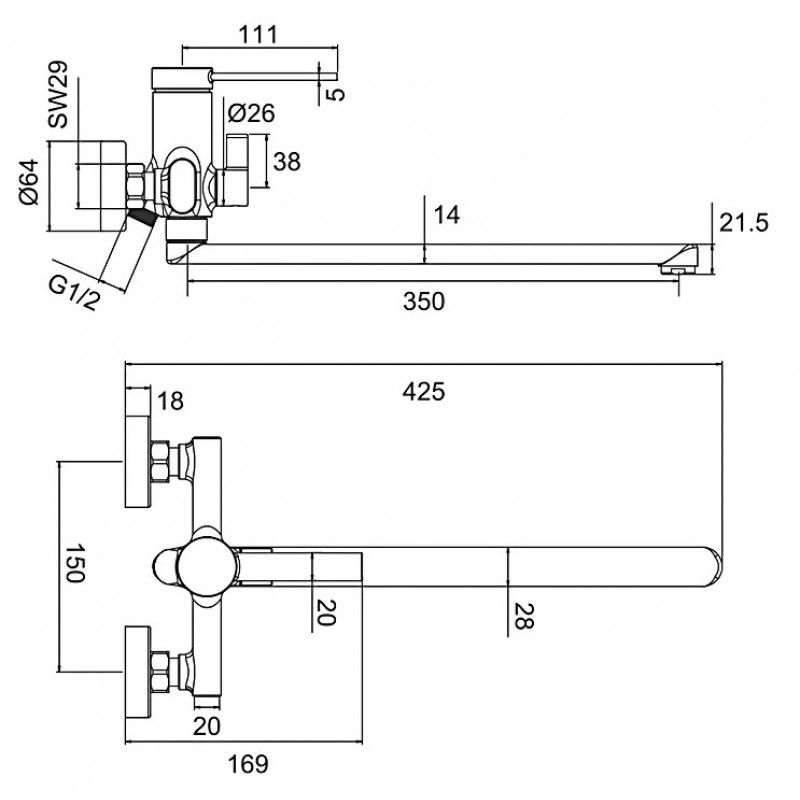 - Длина излива, см:42.5
