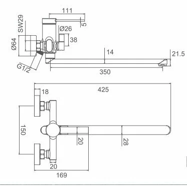 - Длина излива, см:34.6