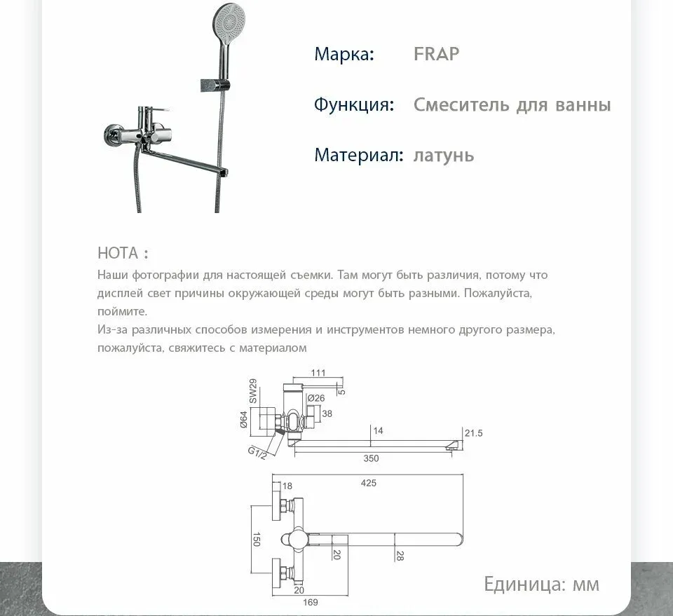 Смеситель для ванны и душа Frap F2267 хром Смеситель для ванны и душа Frap F2267 хром Казань 8857.00 {old_price} Frap