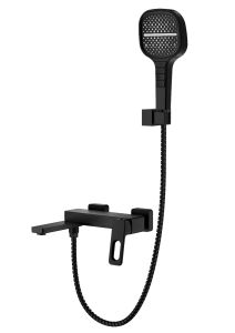 Смеситель для ванны Raglo R51.30.06 с душевым гарнитуром.Цвет: ччерный.Материал: латунь.Управление: однорычажное.Механизм: керамический картридж.Излив: поворотный. Аэратор.Количество режимов струи ручного душа: 4.Переключение режимов ручного душа: кнопочное.Стандарт подводки: G 1/2.Отверстия для монтажа: 2.Монтаж: на стену.