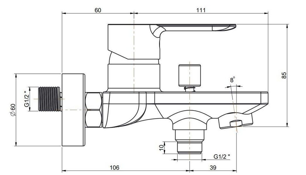 Хромированный смеситель SONATA для ванны выполнен в современном стиле и предусматривает удобное подключение гибкого душа.