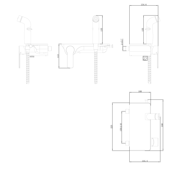 - Аксессуары в комплекте: шланг 1,2 м turn free, лейка для биде с регулятором напора воды