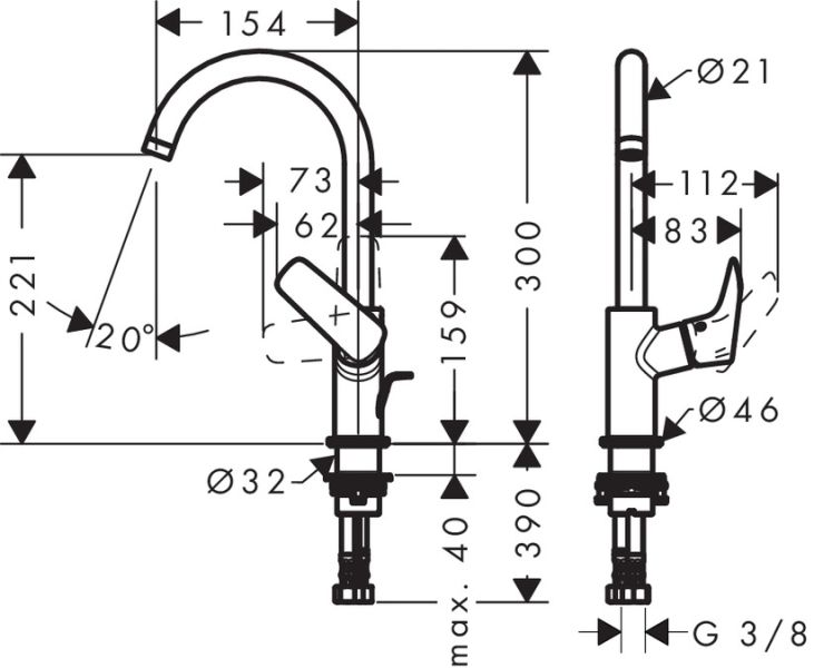 - Высота смесителя:30