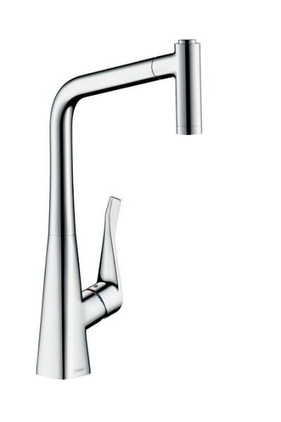 Смеситель для кухни 320, однорычажный, с выдвижным душем Hansgrohe Metris 14820000 по выгодной ценеХарактеристики продукта:-ComfortZone 320-угол поворота излива: регулировка на 2 уровня, на 110° или 150°-ламинарная и душевая струя-фиксируемая душевая струя, автоматическое переключение струи в исходный режим закрытием смесителя-магнитная система крепления душа MagFit-душевой шланг Quick-Connect-подходит для проточных водонагревателейКупить смеситель Hansgrohe Metris 14820000 для кухни Вы можете у нас на сайте Gidro-butik с доставкой по Москве