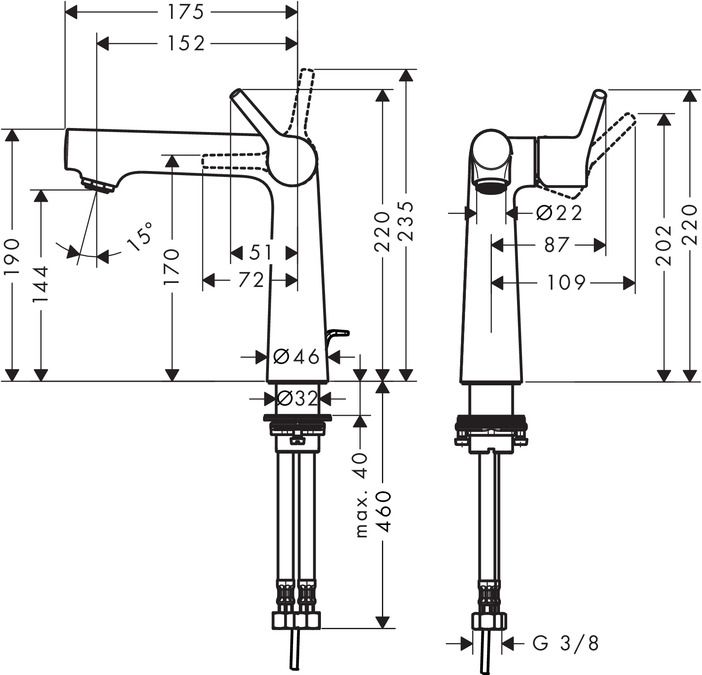 - Высота смесителя:22