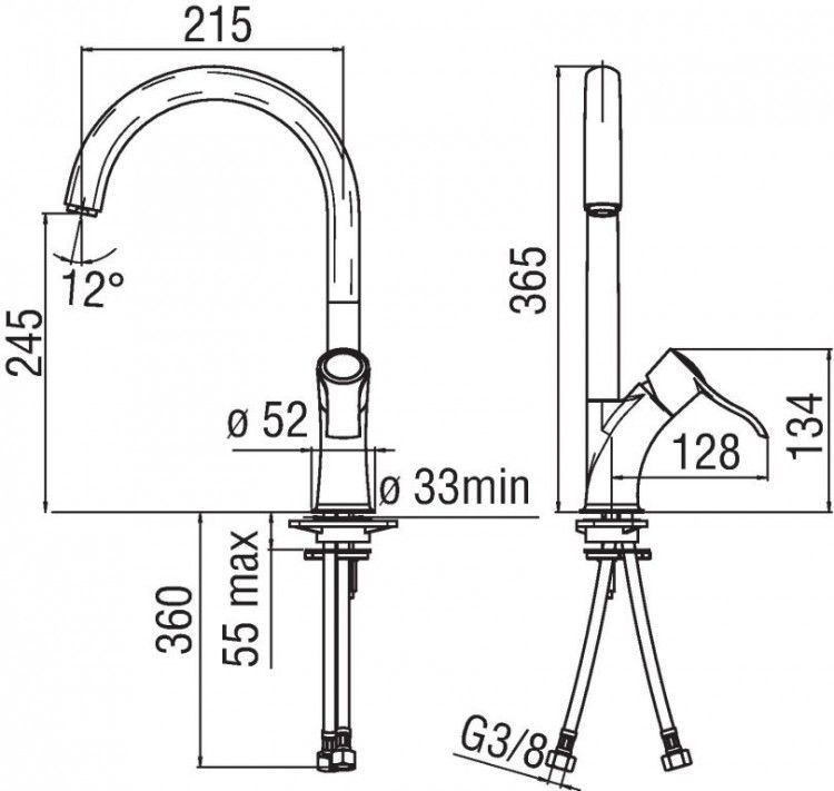 - Стандарт подводки:3/8"