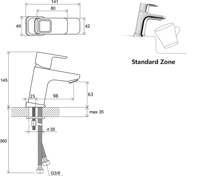 - исполнение: смесители 10° имеют стандартную или увеличенную высоту