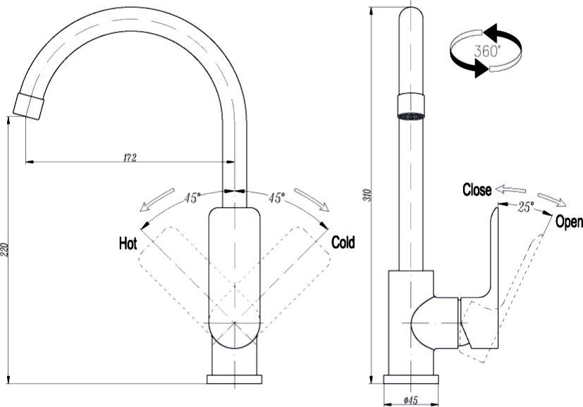 Высота излива: 22 см