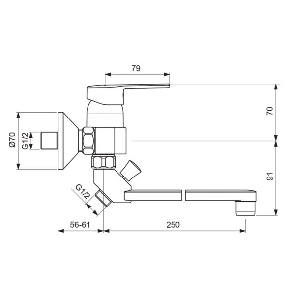 LOGIK Настенный смеситель для ванны/душа, поворотный излив 250 мм, душевой гарнитур в комплекте (лейка 70 мм, метал.шланг 1500 мм, держатель для лейки).