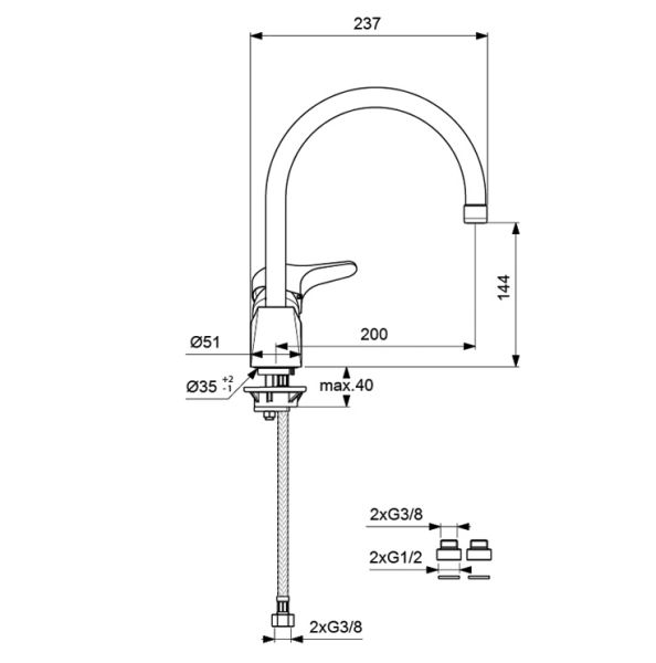 - Высота смесителя:28