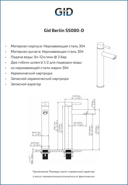Смеситель высокий для раковины Gid Berlin SS080-CH-D SS080CHD хром Смеситель высокий для раковины Gid Berlin SS080-CH-D SS080CHD хром Казань 4226.50 5350.00 Gid