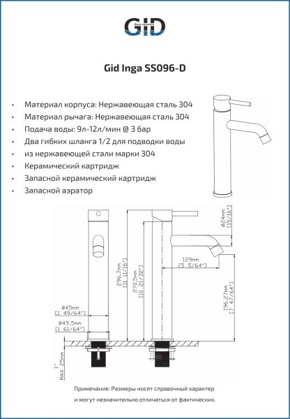 Смеситель высокий для раковины Gid Inga SS096-CH-D SS096CHD хром Смеситель высокий для раковины Gid Inga SS096-CH-D SS096CHD хром Казань 5300.00 {old_price} Gid