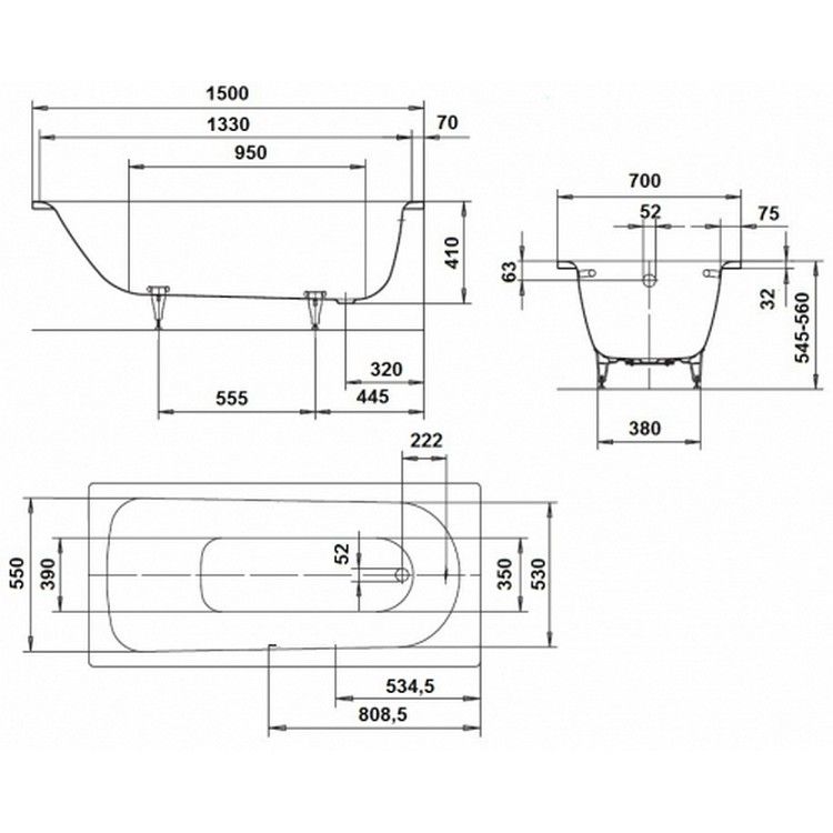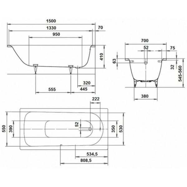 Характеристики стальной ванны kaldewei saniform plus 363 170x70: