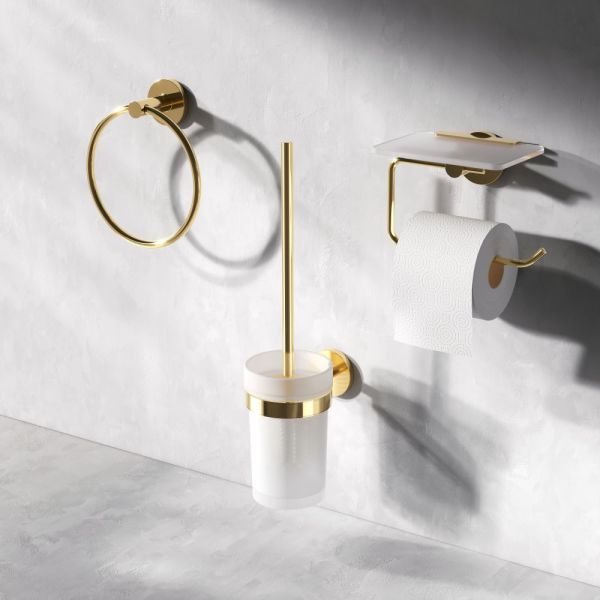Стойка с туалетной щеткой X-Joy – незаменимый аксессуар для вашей ванной. Подвесная установка делает этот продукт невероятно удобным для использования. Продукт выполнен из сплава металлов высочайшего качества с блестящим золотым покрытием устойчивым к механическим повреждениям и матового стекла.