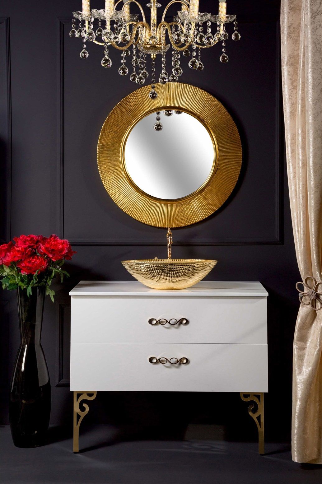 Столешница изготовлена из инновационного материала Solid Glass, в состав которого входит мраморная крошка и стекло. Материал черезвычайно прочен, не оставляет следов царапин и обладает неповторимой глубиной белого цвета.