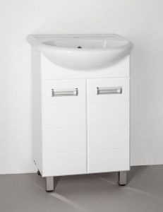 Тумба напольная "Ирис" с прямоугольными фасадами современного дизайна, декорированная врезными ручками хром/матовый хром. Направляющие полного выдвижения Hettich обеспечивают плавность и бесшумность хода, высокую надежность и прочность. Данная тумба предусматривает открытую подводку воды
