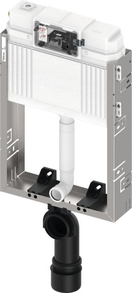 Для монтажа на кирпичах перед несущей стеной. Комплект поставки: Сливной бачок Uni с приводом спереди: • Предохранительный бак из ударопрочного пластика • Сливной бачок полностью собран и опломбирован • Соединение сливного бачка с внутренней резьбой 1/2" • Объем бачка 10 литров; предустановленный объем смыва 6 литров; можно настроить объем смыва 4,5/7,5/9 литров; объем малого смыва 3 литра с системой двойного смыва. Оставшийся объем можно использовать для быстрого смыва. • Изоляция для предотвращения образования конденсата • Для панелей и рукояток смыва унитаза TECE • Возможность установки системы с одинарным или двойным смывом в зависимости от используемой панели смыва • Проверено в соответствии с DIN EN 14055 • Акустическая группа 1 в соответствии с DIN 4109 • Бесшумный гидравлический заливной клапан Комплект поставки модуля: • Рама из оцинкованной стали • Две крепежные шпильки с гайками M 12, монтажное расстояние 180 или 230 мм • Фановый отвод унитаза DN 90 из ПВХ с переходником DN 90/100 из PP • Переходник также подходит для горизонтального монтажа • Соединительный комплект унитаза DN 90, включая защитные заглушки Дополнительно приобретается: • Панель смыва унитаза (см. панели смыва) • Контейнер для гигиенических таблеток (опционально) • Комплект опор 9030024 Примечание. Идеален для рядного монтажа с креплением непосредственно с угловыми соединениями к системе профиля TECEprofil в качестве средства выравнивания.