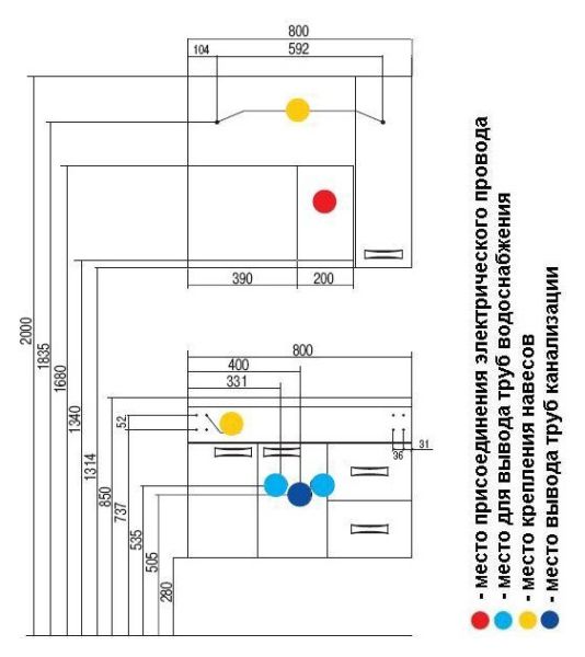 - В тумбе помимо обычного вывода труб (в стену) предусмотрена возможность сделать нижнее подключение из пола