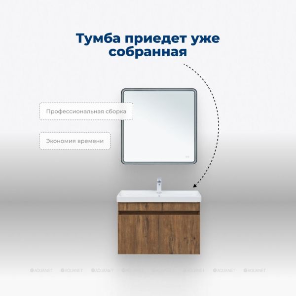 Тумба Aquanet Оптима 80 продумана до мелочей. В ней предусмотрено удобное место для подводки коммуникаций снизу, что облегчает установку и подключение сантехнического оборудования.