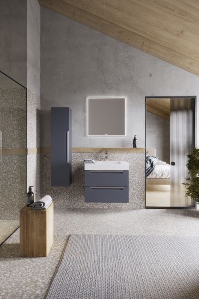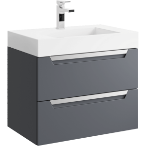 Подвесная тумба в сером матовом цвете с двумя ящиками под умывальник из литьевого мрамора.Коллекция мебели Cube – это строгие линии мебели для современных интерьеров, подчёркнутые искусным исполнением. Подвесные гарнитуры Cube поставляются в размерах 70 и 90 см. Доступные цвета мебели – белый и серый. Финальный слой лака – матовый.