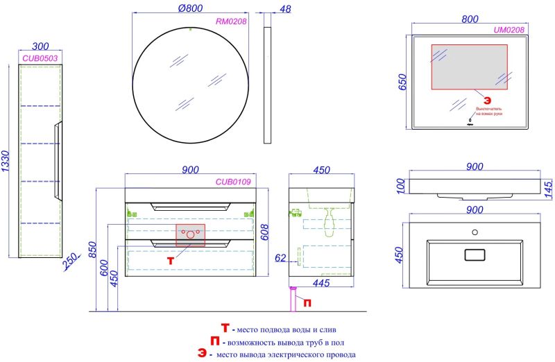 Тумба под раковину Aqwella Cube 90см серый CUB0109GR купить