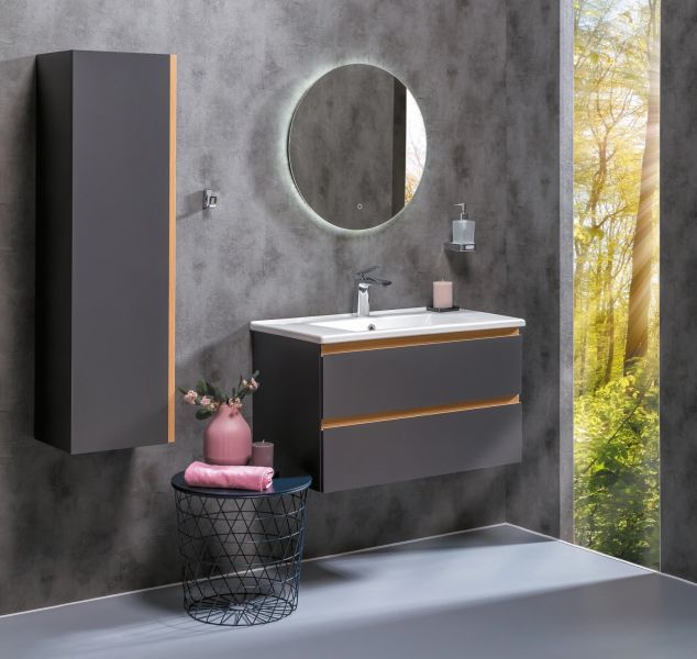 Тумба для комплекта Armadi Art Capolda 85 антрацит не только восхитительное украшение для ванной комнаты, но и восхитительное функциональное решение любого санузла. Подвесной способ установки дает возможность не только визуально увеличить пространство, но и обеспечивает быстрый и удобный доступ для уборки.В производстве используют только качественные влагостойкие материалы (ДСП), в составе которых полностью отсутствуют опасные вещества. Коллекция Capolda выполнена в эксклюзивном дизайнерском решении в лучших традициях. Черный, основной цвет исполнения Armadi Art Capolda, безупречно впишется в любой дизайн проект. Тумба под раковину предусматривает удобную и вместительную систему хранения, состоящую из ящиков. Ключевые габариты изделия: ширина 82 см, глубина 45 см, высота 48 см.Италия родина бренда Armadi Art, вся продукция производится со строгим соблюдением всех стандартов, благодаря чему можно быть абсолютно уверенным в надежности и высоком качестве. Тумба для комплекта Armadi Art Capolda 85 антрацит создаст уют и комфорт в любом дизайнерском решении, и ванная комната обретет неповторимый элемент интерьера.