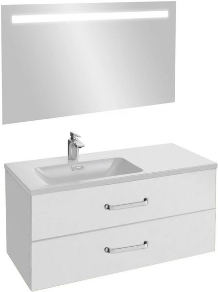 Мягкий и плавный ход ящиков с функцией Soft Close. Изогнутые ручки с покрытием цвета матовый хром.