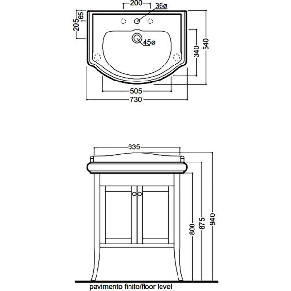 Тумба под раковину Kerasan Retro 734940 напольная орех купить