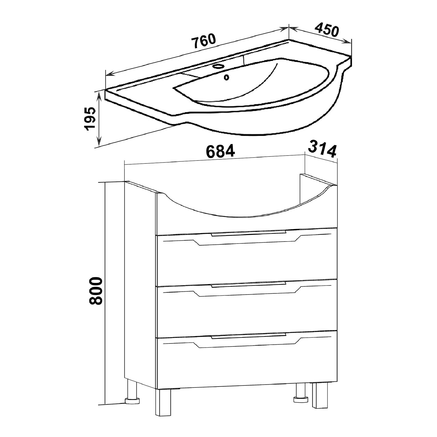 Тумба под раковину Runo (под умывальник Элеганс 75) Верона 75 (00000001146) купить