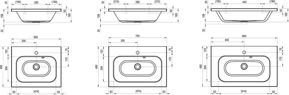 Умывальник Ravak Chrome 800 со скрытым переливомУмывальники Chrome 600/700/800.