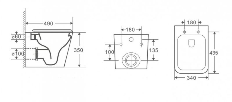 - Прилегание унитаза к стене:вплотную