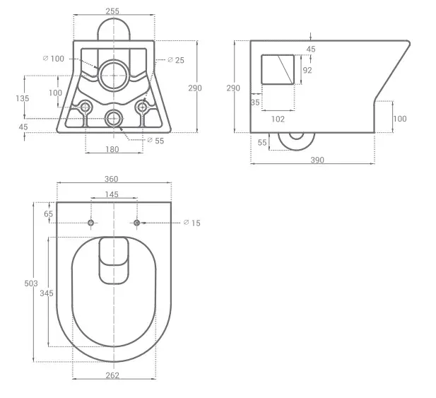 - Укороченный унитаз:нет