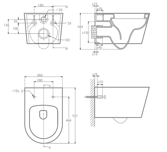 Унитаз Hansmann keramik ROUND УНИ0002 подвесной с сиденьем МикролифтБезободковый, повышеный уровень гигиены и простая очистка. Экономия места, компактная форма. Горизонтальный выпуск 102мм. Съемная, откидная крышка, облегчает регулярный уход. Простая установка, крепления откидной крышки только сверху. Крепеж для подвесного унитаза в комплекте