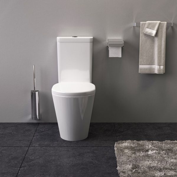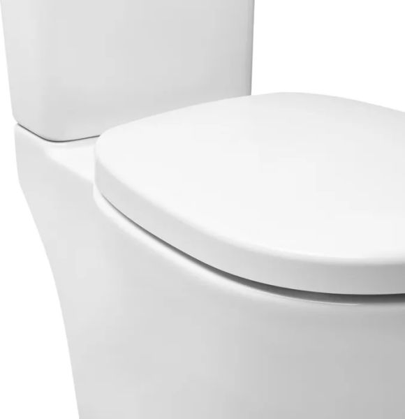 Унитаз-компакт с сиденьем из дюропласта с функциями Soft Close и Easy Fix, горизонтальный выпуск, двухуровневая водосливная арматура с кнопкой 38 мм. Упаковка: картонная коробка.