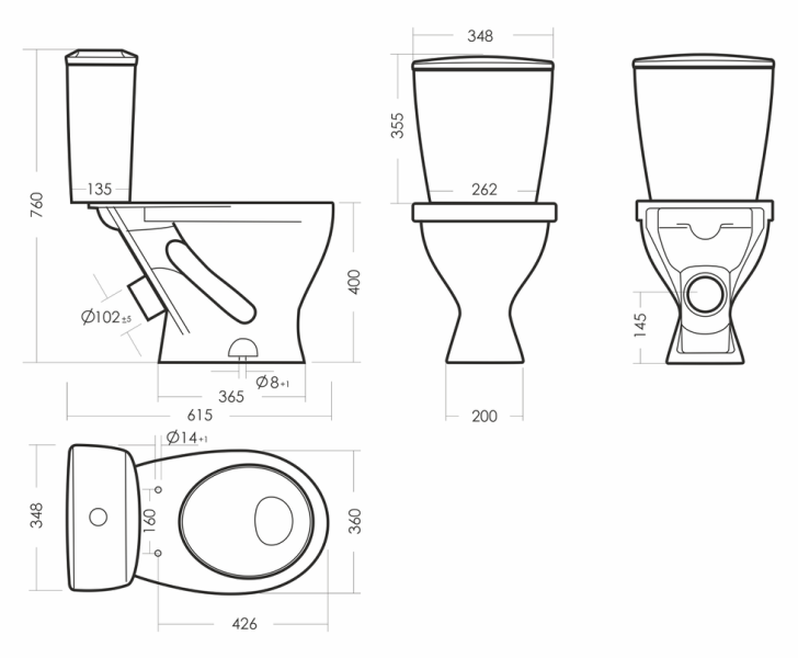 Унитаз-компакт ЭТАЛОН - самая популярная модель в линейке с широким бачком и функцией "антивсплеск", которая предотвращает брызги.