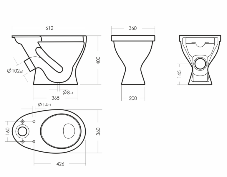 Размеры унитаза-компакта: 360 x 615 x 758