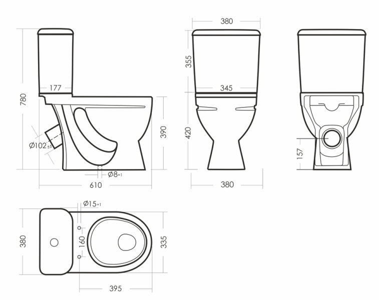 Модель унитаза-компакта СТАНДАРТ сконструирована с косым выпуском. Унитаз будет просто подвести к канализации и легко установить в квартире. Дополнительное преимущество - форма чаши предотвращает разбрызгивание воды.