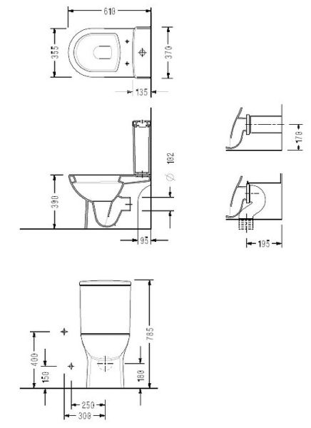 - Крышка-сиденье: тонкое с функцией плавного закрывания