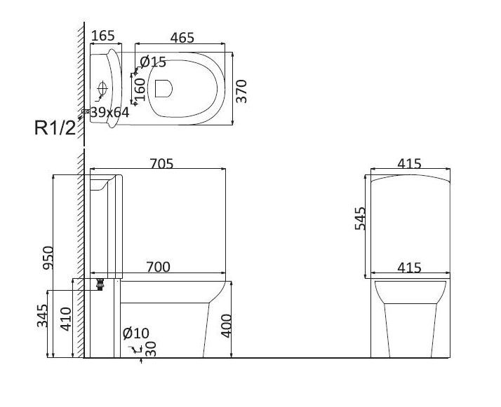 • Прилегание унитаза к стене: