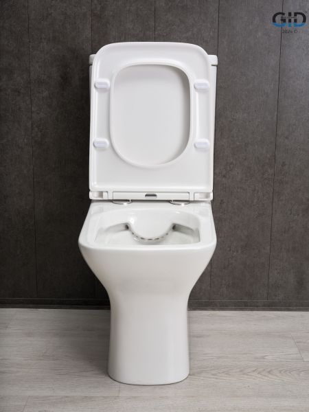 Concavo — коллекция вогнутых к низу унитазов и биде для стильных интерьеров. Испанское качество и сертификация по европейским нормам делают их надежным выбором. Напольный безободковый унитаз GiD Tn2125 выполнен из прочной мелкопористой керамики с горизонтальным выпуском. Модель в белом цвете с современным дизайном и легко чистящейся поверхностью. Оснащён сиденьем из дюропласта с микролифтом, что обеспечивает комфорт и тишину при использовании. Благодаря антигрязевому покрытию и воронкообразной квадратной чаше унитаз обеспечивает высокий уровень гигиены и легкость ухода.