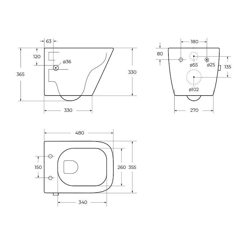 - Укороченный унитаз:нет