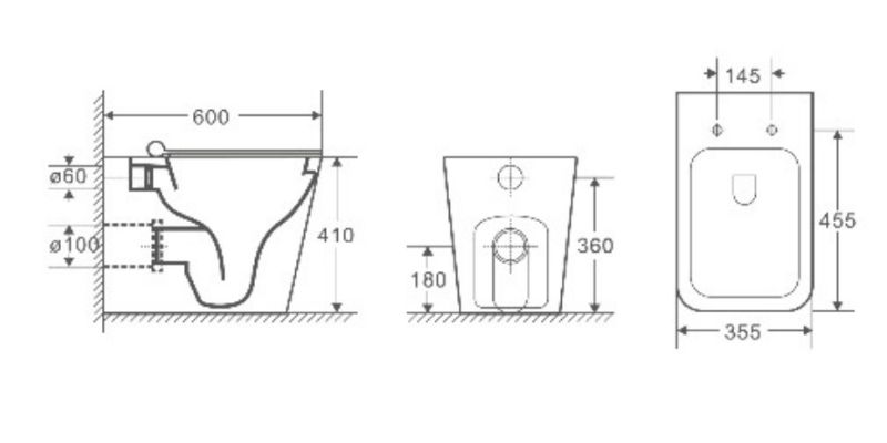- Прилегание унитаза к стене:вплотную