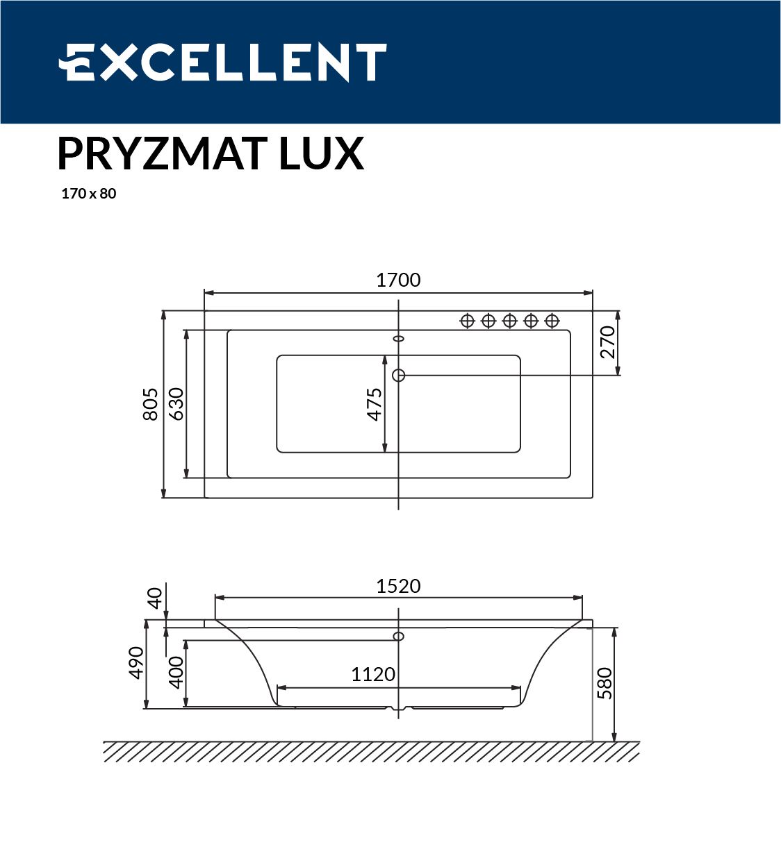 Ванна акриловая EXCELLENT Pryzmat Lux 170x80 Ванна от Польского производителя отличающаяся высоким качеством и выдающимся внешним видом эфектно впишется в любую ванную комнату. Долгий срок службы подтверждается высоким гарантийным сроком ванн Excellent